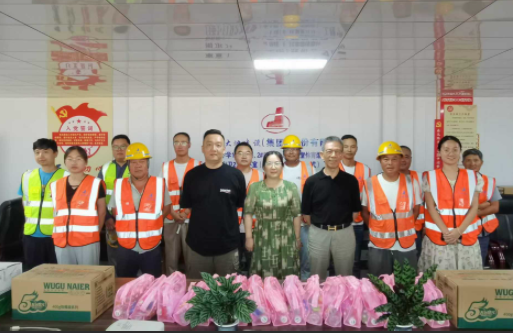 8月15日下午,集团工会主席、集团公司党群部部长朱亚萍、有限责任公司党委书记顾卫东一行来到软件园中学项目部,开展“送清凉”活动,为高温作业的员工送上矿泉水、酸梅汤等防暑物资,实地了解员工工作和生活情况。