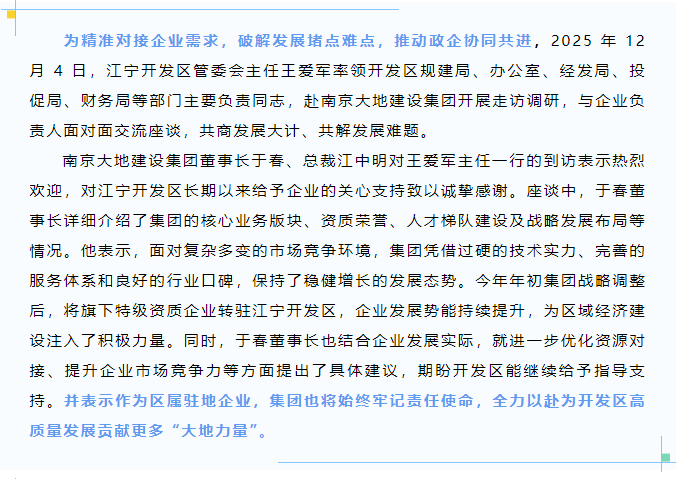 双向奔赴 精准服务 | 江宁开发区领导走访南京大地建设集团